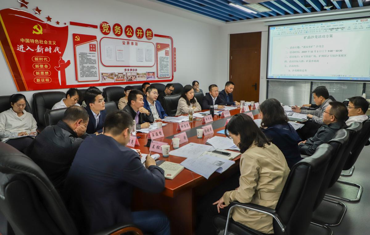 調研組一行首先對2號館、3號館、5號館、6號館裝修現場(chǎng)進(jìn)行實(shí)地踏勘,對今年參展的展品與布局給予高度評價(jià)。在隨后的座談會(huì )上,文旅集團董事長(cháng)黃海燕對“不忘初心、牢記使命”主題教育和第三屆中國(黃石)地礦科普大會(huì )籌備情況進(jìn)行匯報,文旅集團班子成員分別從展會(huì )活動(dòng)、研學(xué)、宣傳、服務(wù)、安全等方面作了詳細介紹,并對存在的困難,以及需要城發(fā)集團協(xié)調解決的問(wèn)題提出了請求。集團公司財務(wù)部、企發(fā)部、項目部、審計部、黨群部負責人分別從各自職能表態(tài)全力支持文旅集團辦好地礦科普大會(huì ),幫助文旅集團協(xié)調解決“不忘初心、牢記使命”主題教育所提出請求。