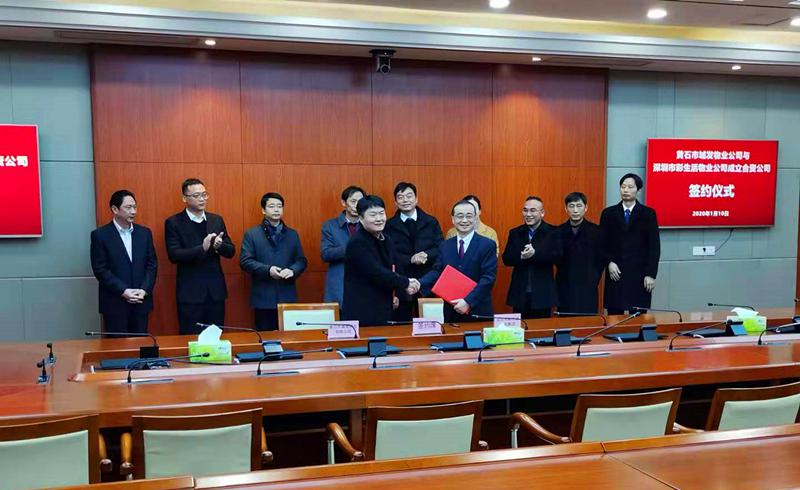 1月10日上午10:30,城發(fā)物業(yè)公司與全國排名前三的深圳市彩生活服務(wù)集團在城發(fā)集團舉行合資公司(黃石市城發(fā)彩生活物業(yè)服務(wù)有限公司)簽約儀式。