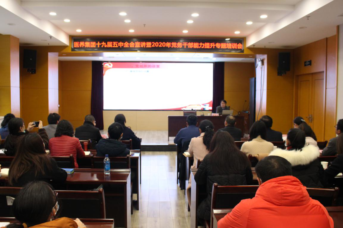 為深入學(xué)習宣傳貫徹黨的十九屆五中全會(huì )精神,11月28日,醫養集團組織召開(kāi)十九屆五中全會(huì )精神宣講暨黨務(wù)干部能力提升專(zhuān)題培訓會(huì )。醫養集團領(lǐng)導班子及直屬單位領(lǐng)導班子、機關(guān)部室負責人、直屬各單位黨政辦負責人、基層支部書(shū)記、黨務(wù)干部參加培訓。