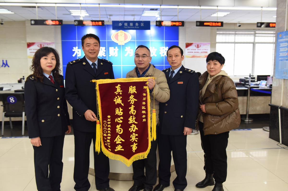 12月16日上午,城發(fā)置業(yè)(停車(chē)、教育)公司總經(jīng)理程勇向黃石港區稅務(wù)局送去一面錦旗,感謝黃石港區稅務(wù)局幫助公司享受增值稅期末留底稅額退稅優(yōu)惠政策,實(shí)現退稅590萬(wàn)元。