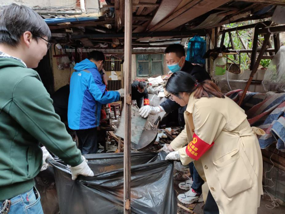 在社區工作者的引導下,大家分工協(xié)作,耐心勸導私搭亂建的居民,并對轄區內的公共場(chǎng)所亂搭亂建、垃圾雜物等進(jìn)行集中清理。志愿者們有的清理居民樓下亂搭的雨棚,有的清理公共廁所頂上的雜物、還有的志愿者在清理依山而建樓梯上的垃圾。
