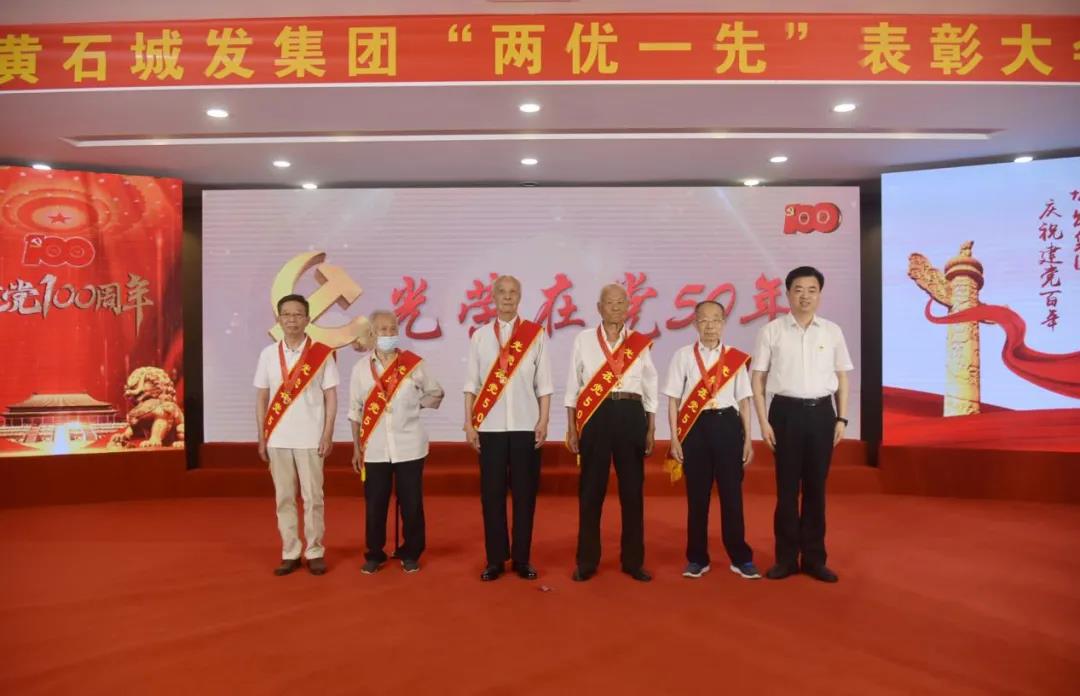 一朝入黨,一生為黨。黨徽、五角星、旗幟等元素交相輝映,“光榮在黨50年”字樣熠熠生輝。大會(huì )現場(chǎng),集團黨委書(shū)記、董事長(cháng)潘憲章為王明林、程良清、劉成久、楊尚榮、李開(kāi)唐等5名老黨員代表頒發(fā)“光榮在黨50年”紀念章,并向城發(fā)集團59名“光榮在黨50年”老黨員表示崇高敬意。