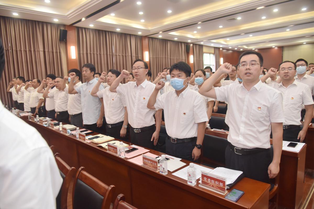 來(lái)自全系統的30名新發(fā)展黨員代表面對黨旗莊嚴宣誓,全體老黨員集體重溫入黨誓詞,鏗鏘有力宣誓將大會(huì )推向高潮。