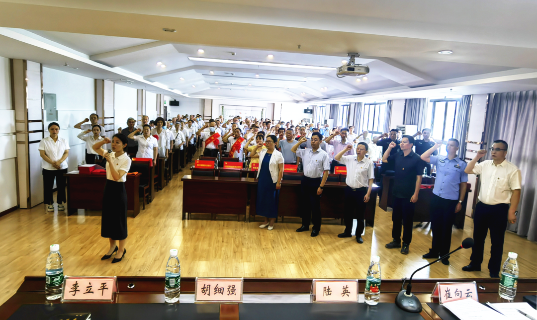 南岳社區大黨委100余名黨員干部重溫入黨誓詞,面對黨旗莊嚴宣誓,雄壯有力的宣誓聲,久久激蕩在每位黨員干部的心中。