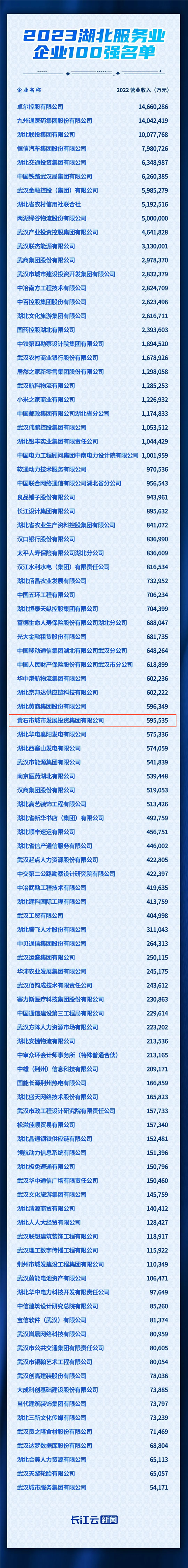 11月1日,2023年湖北企業(yè)三項100強發(fā)布會(huì )在武漢召開(kāi)。會(huì )上,湖北省企業(yè)聯(lián)合會(huì )、湖北省企業(yè)家協(xié)會(huì )發(fā)布“2023湖北企業(yè)100強、湖北制造業(yè)企業(yè)100強、湖北服務(wù)業(yè)企業(yè)100強”名單,黃石城發(fā)集團再度榮獲2023年湖北服務(wù)業(yè)企業(yè)100強稱(chēng)號。