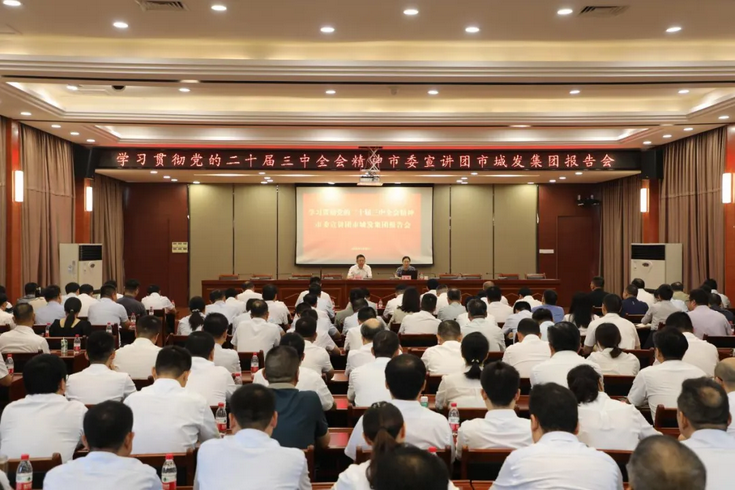 按照市委統一安排部署,9月30日,市城發(fā)集團舉行學(xué)習貫徹黨的二十屆三中全會(huì )精神宣講報告會(huì )。市委黨校經(jīng)濟教研室主任、市委宣講團成員唐敏教授作宣講報告,集團黨委書(shū)記、董事長(cháng)程正棟主持會(huì )議并講話(huà)。